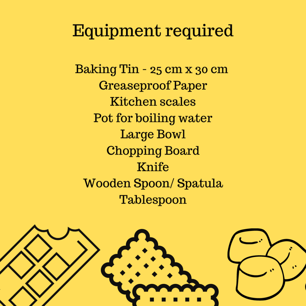 - Prepare the baking tray with greaseproof paper, making sure that the paper is quite high at the sides of the tin as it will be easier to lift the mixture out once it’s dried. Put the tin to one side until required.