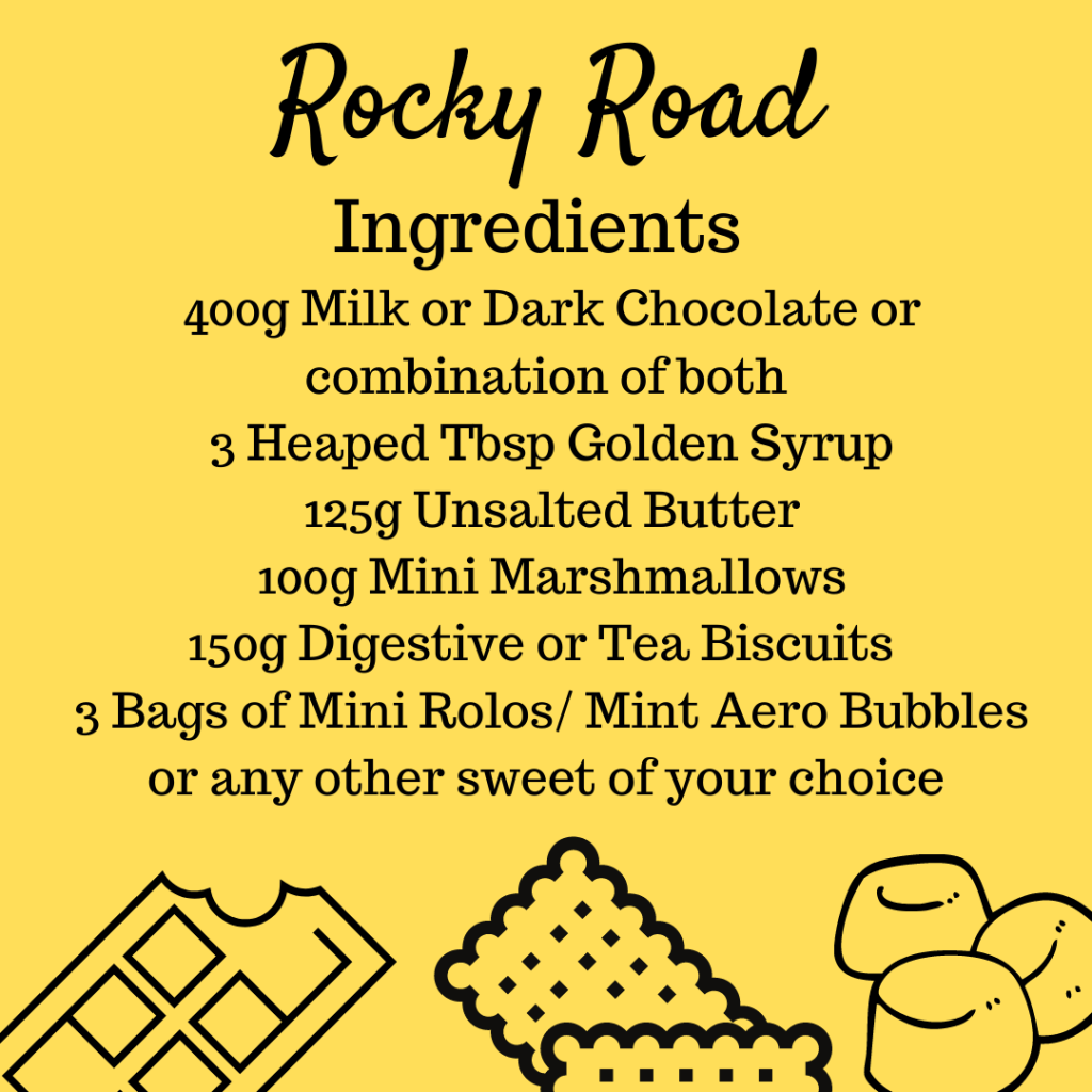 Rocky Roads are typically milk chocolate, marshmallow, biscuits, nuts or dried fruit but I know not everyone likes those flavours. I have seen so many recipes online and the Rolo and Mint Aero’s recipes got my attention and thought I need to makes these. Then decide which one I like best, I mean get my nieces and nephew’s to try and let me know which ones they like best 🙂
